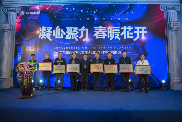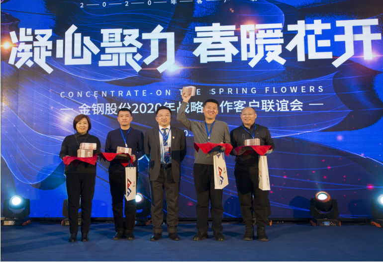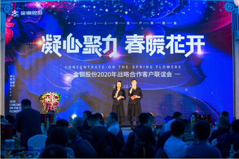 公司邀請(qǐng)48戶核心戰(zhàn)略合作伙伴共計(jì)180余人參加了會(huì)議。會(huì)上,公司黨委書記、董事長(zhǎng)沈江山首先致歡迎詞;隨后部分客戶代表發(fā)表會(huì)議致辭(廣州廣鋼新材料公司、上海金通物產(chǎn)公司、黑龍江現(xiàn)代紅嘴鋼鐵經(jīng)銷公司、遼寧固存興鋼鐵供應(yīng)鏈管理公司、瓦房店軸承股份公司、遼寧方大國(guó)際貿(mào)易公司),我的鋼鐵網(wǎng)資深分析師甘遐勇先生做了《2020年國(guó)內(nèi)鋼礦市場(chǎng)回顧及2021年行業(yè)發(fā)展展望》專題報(bào)告;銷售處長(zhǎng)、供應(yīng)處長(zhǎng)宣布了2020年金牌分銷商、金牌供應(yīng)商評(píng)選結(jié)果并主持頒獎(jiǎng)。最后,公司總經(jīng)理蔣俊對(duì)金鋼股份2020年工作進(jìn)行了簡(jiǎn)要總結(jié),對(duì)2020年品牌建設(shè)、市場(chǎng)開發(fā)、經(jīng)營(yíng)業(yè)績(jī)進(jìn)行了全面盤點(diǎn),對(duì)2021年經(jīng)營(yíng)目標(biāo)、計(jì)劃安排、市場(chǎng)布局、營(yíng)銷重點(diǎn)進(jìn)行了重點(diǎn)介紹,并對(duì)下一步客戶合作提出了新的目標(biāo)和期望。會(huì)后進(jìn)行了答謝酒會(huì)。