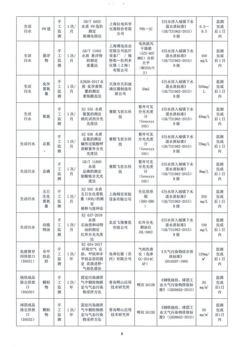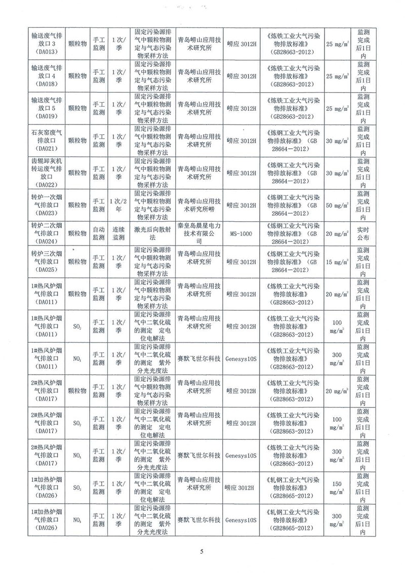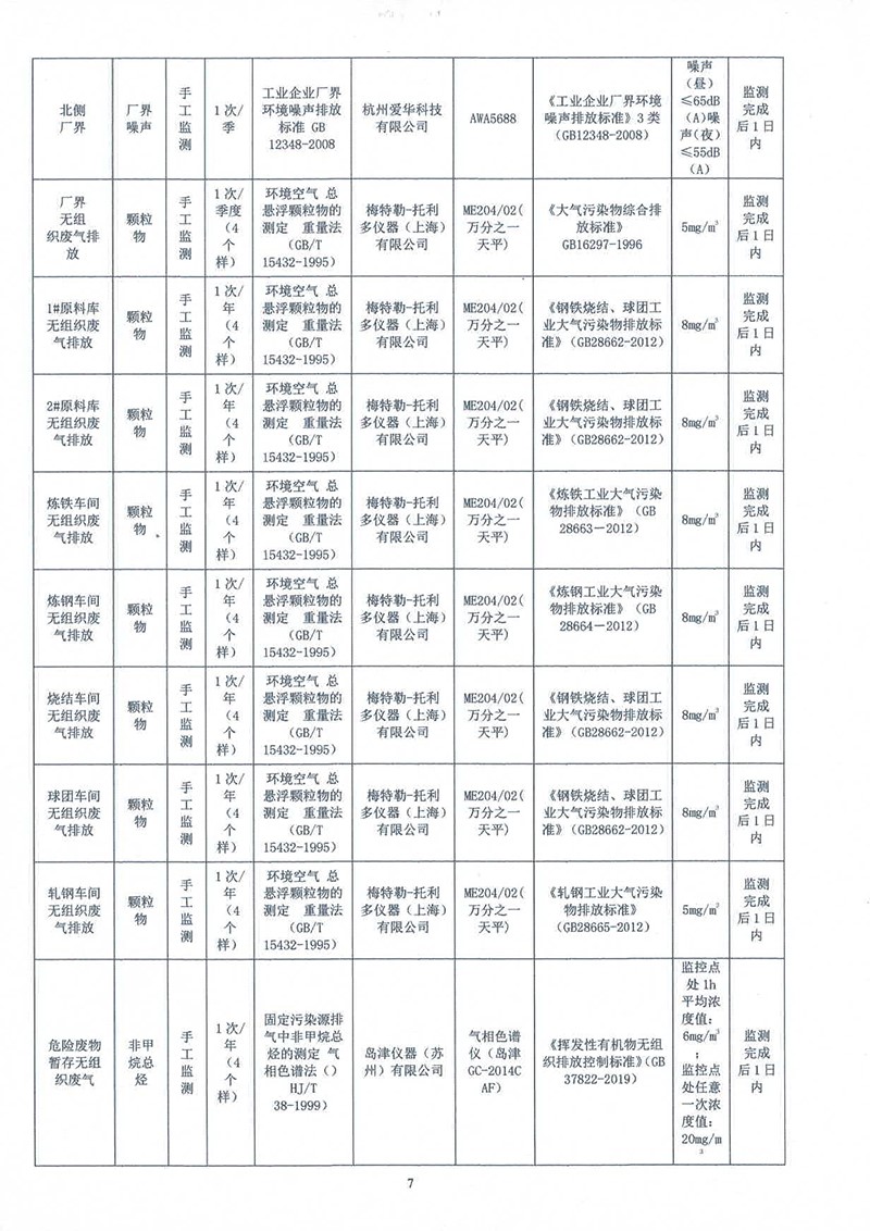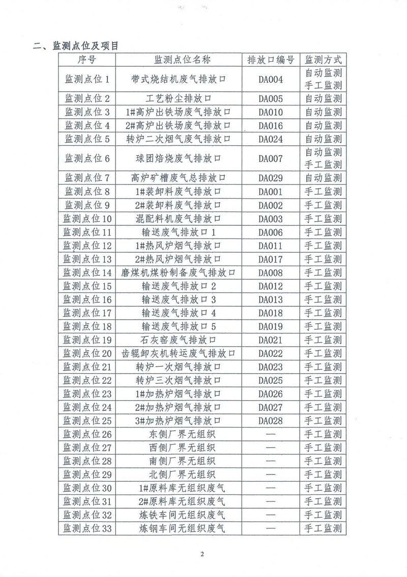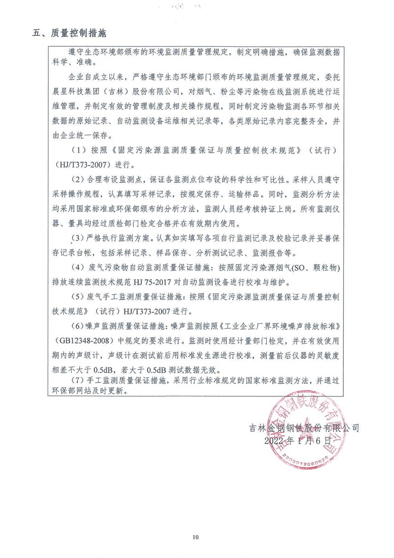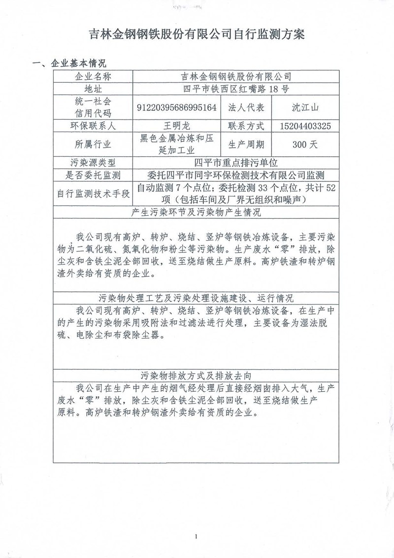 吉林金鋼鋼鐵股份有限公司2022年度自行監測方案