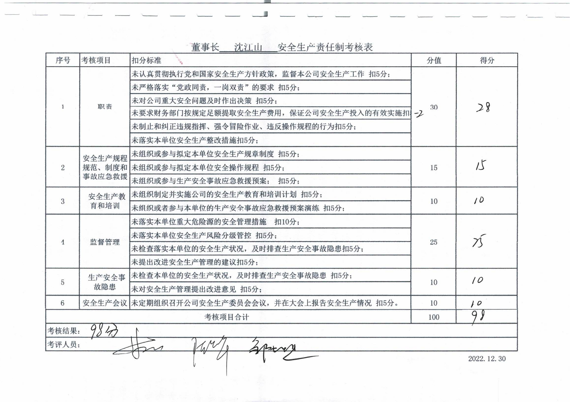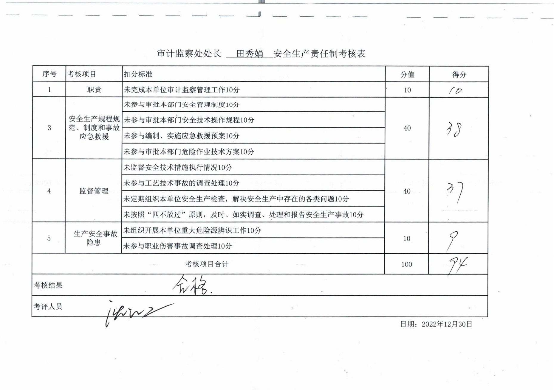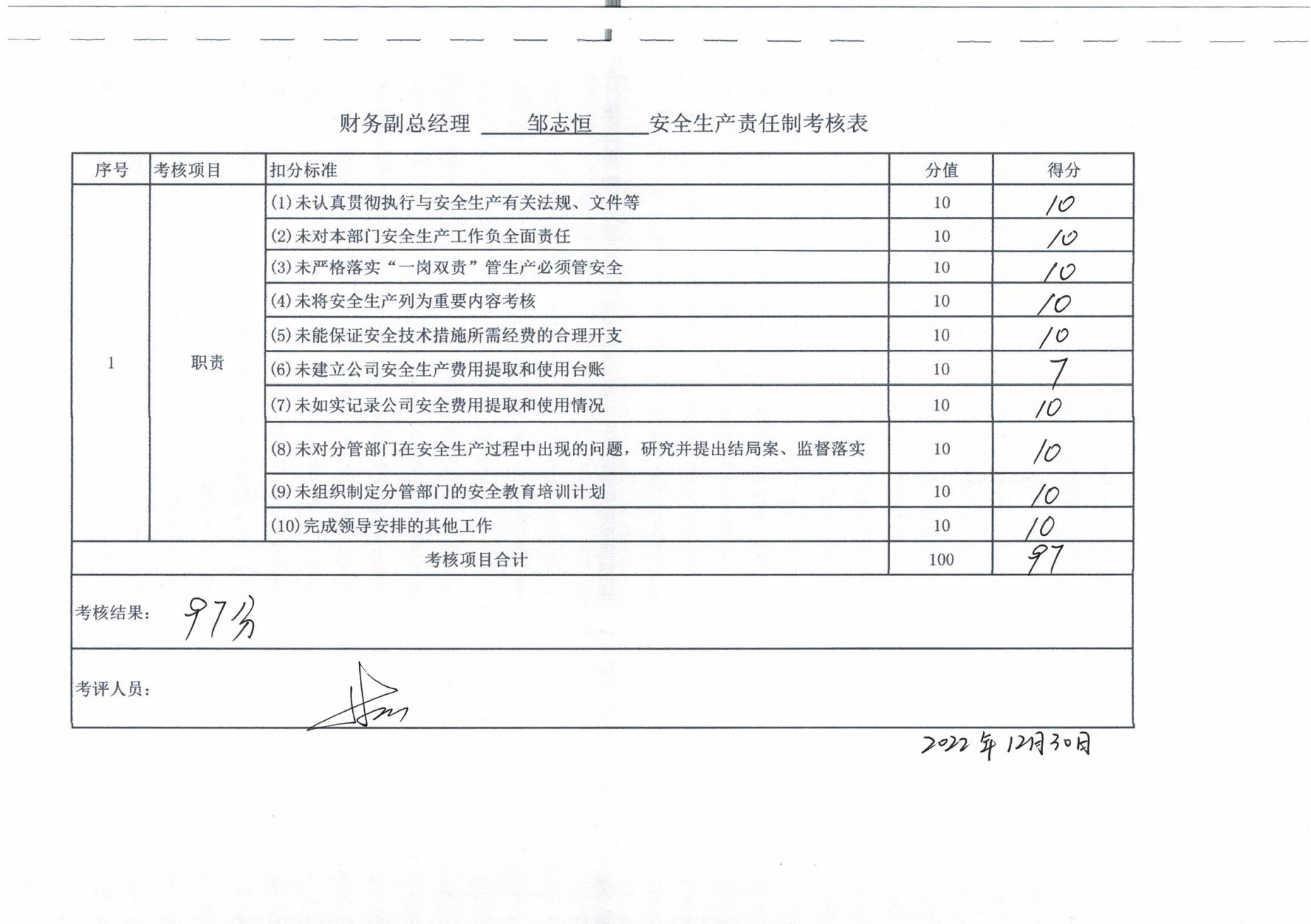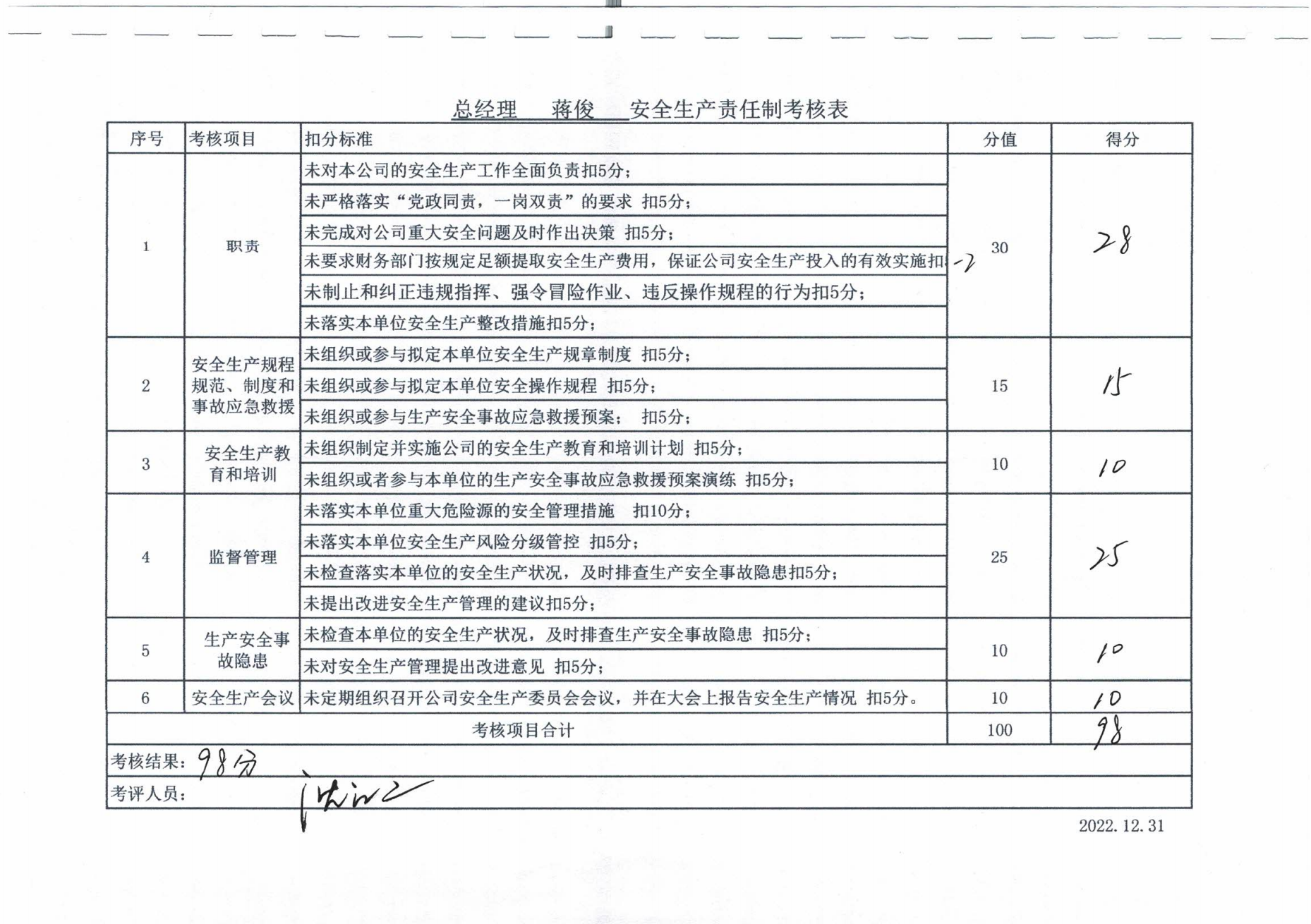 2022年主要負(fù)責(zé)人安全生產(chǎn)責(zé)任制考核公示