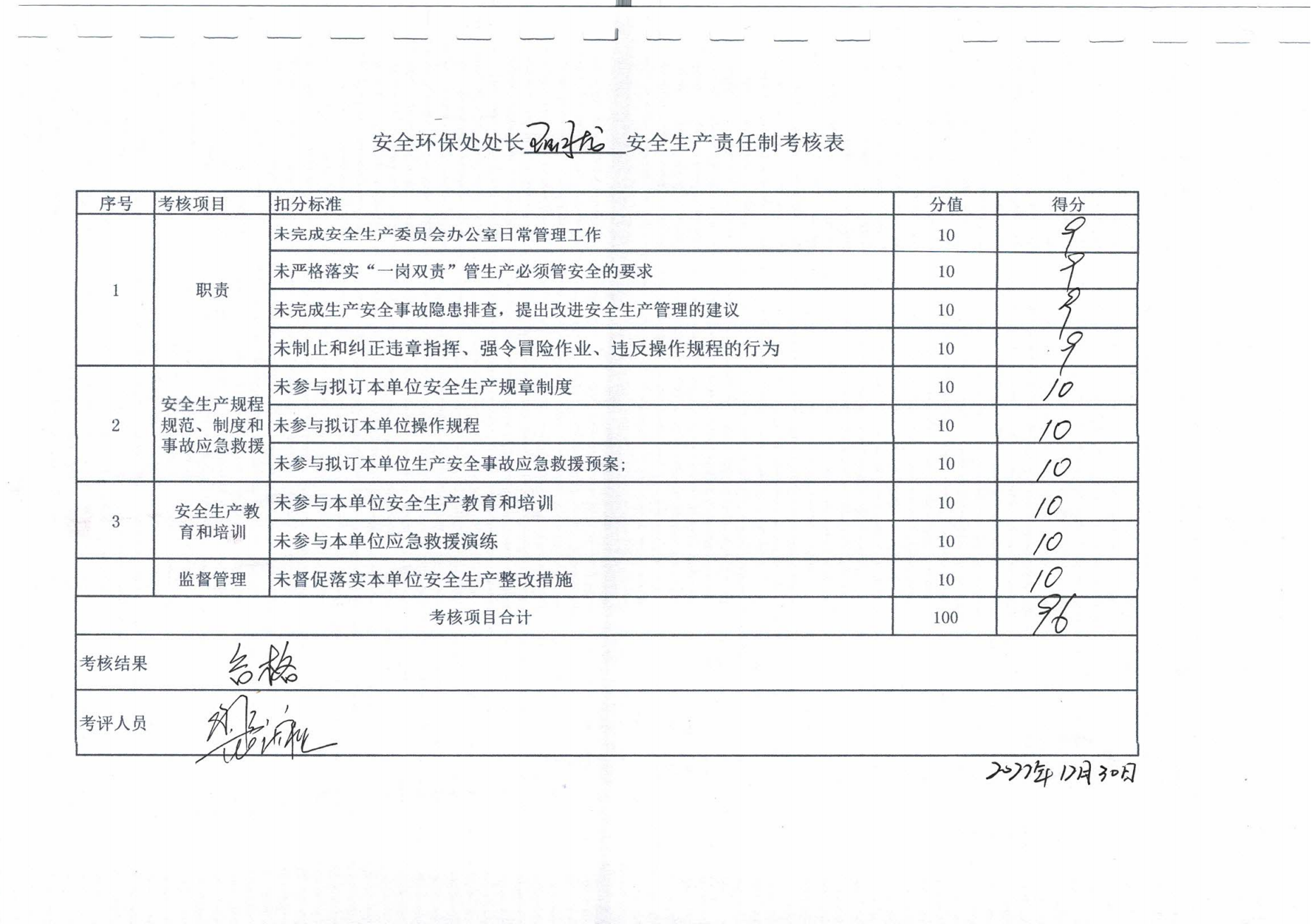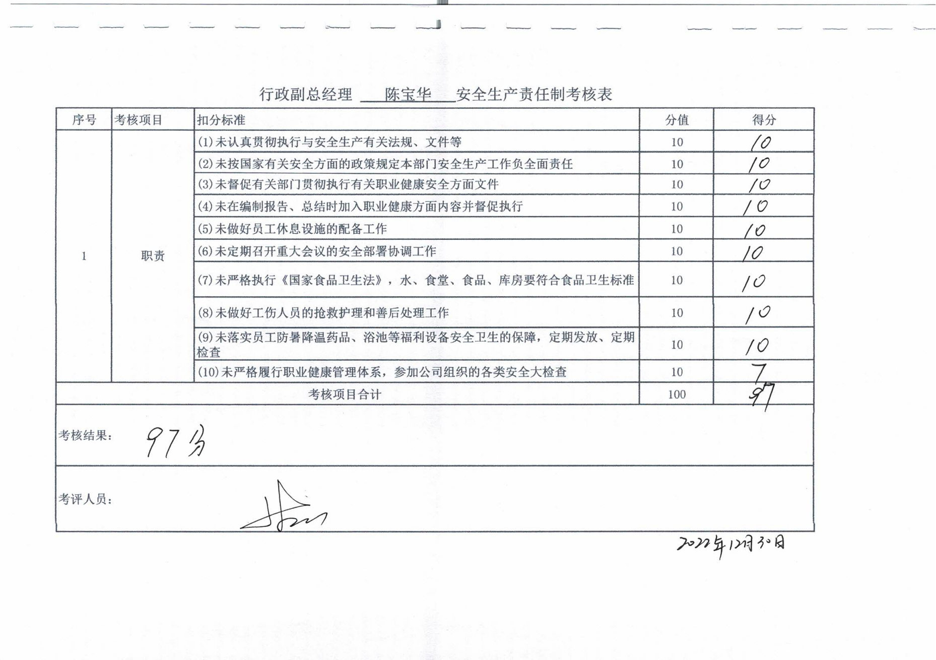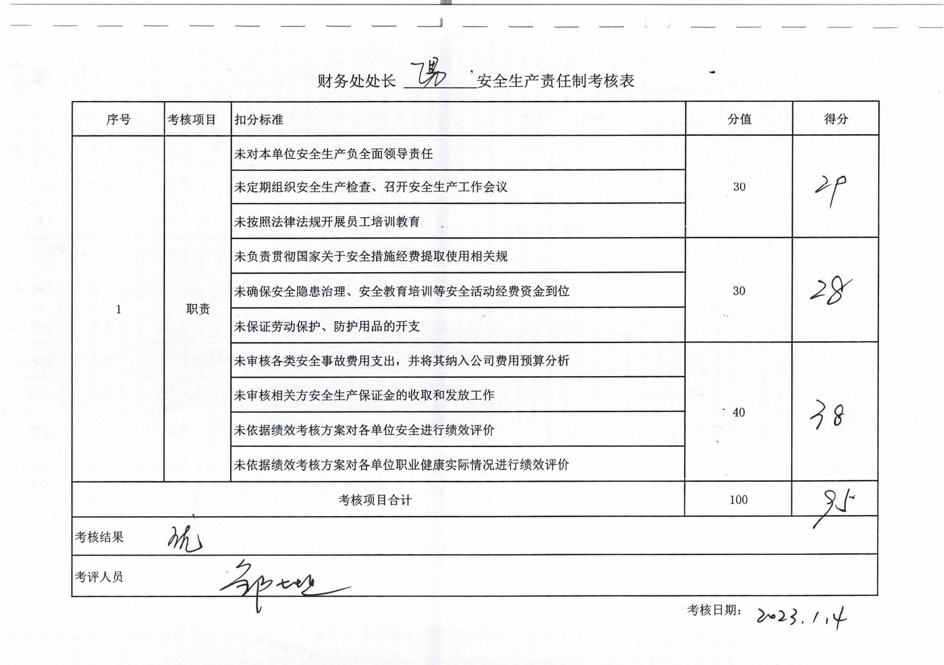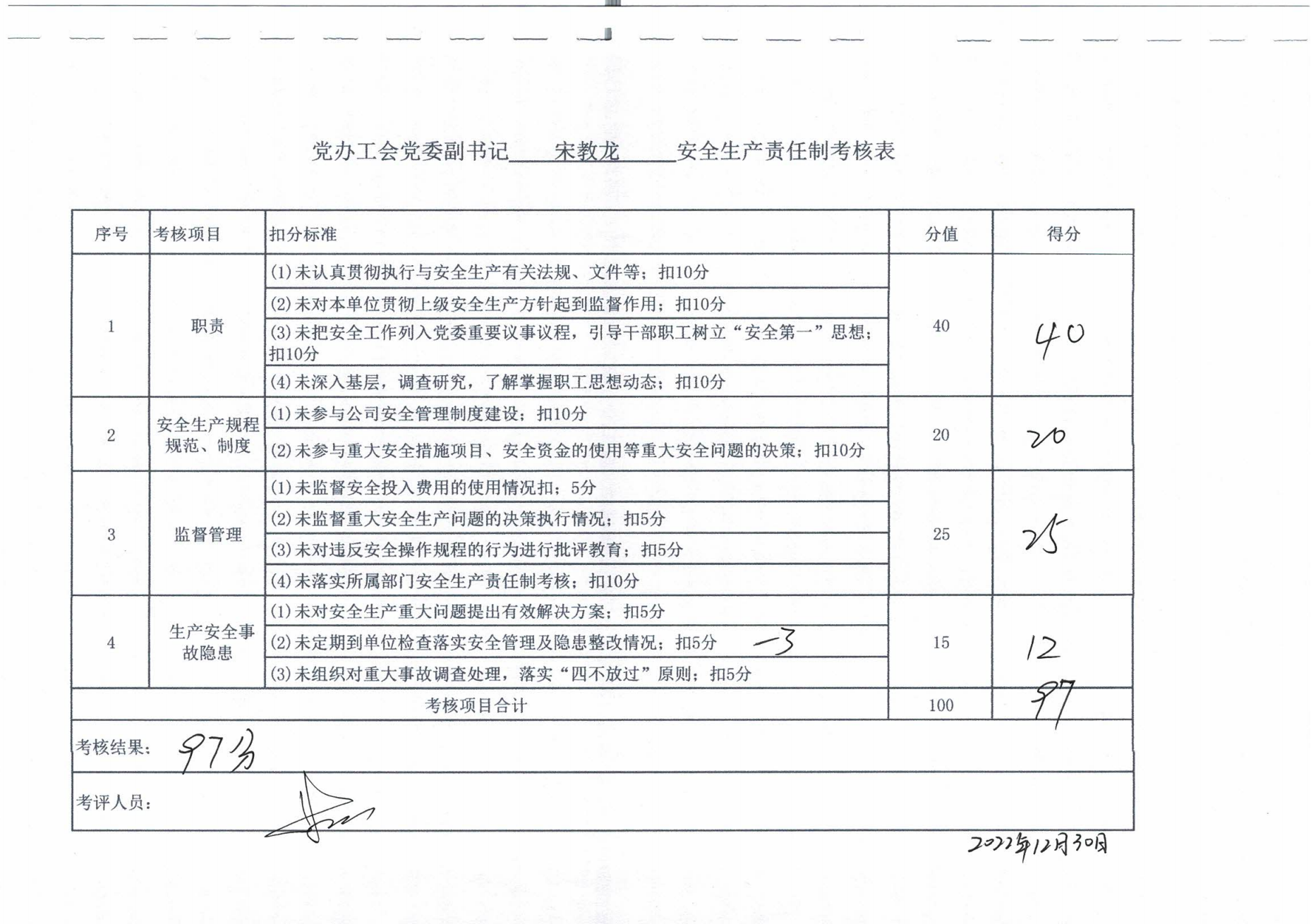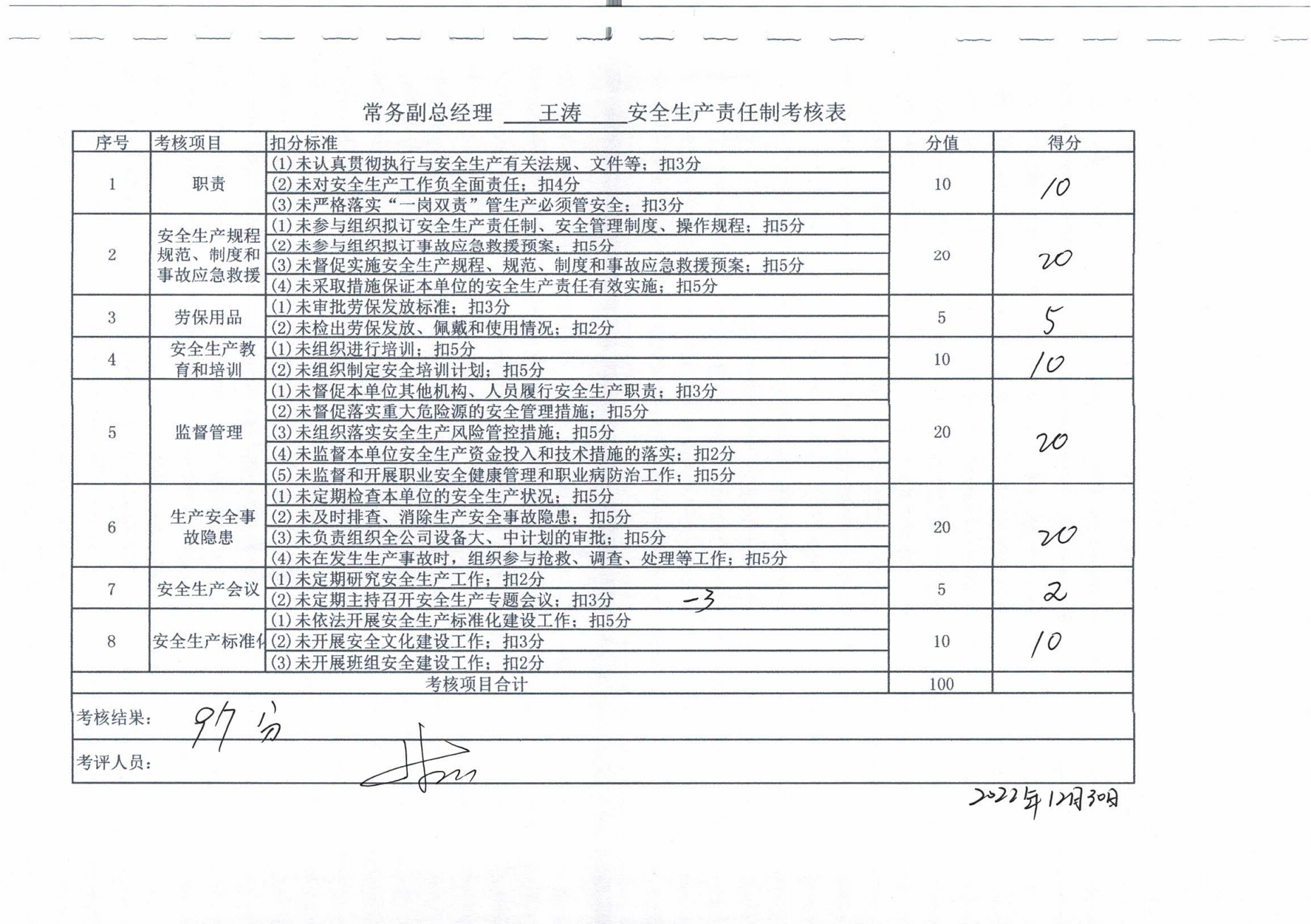 2022年主要負(fù)責(zé)人安全生產(chǎn)責(zé)任制考核公示