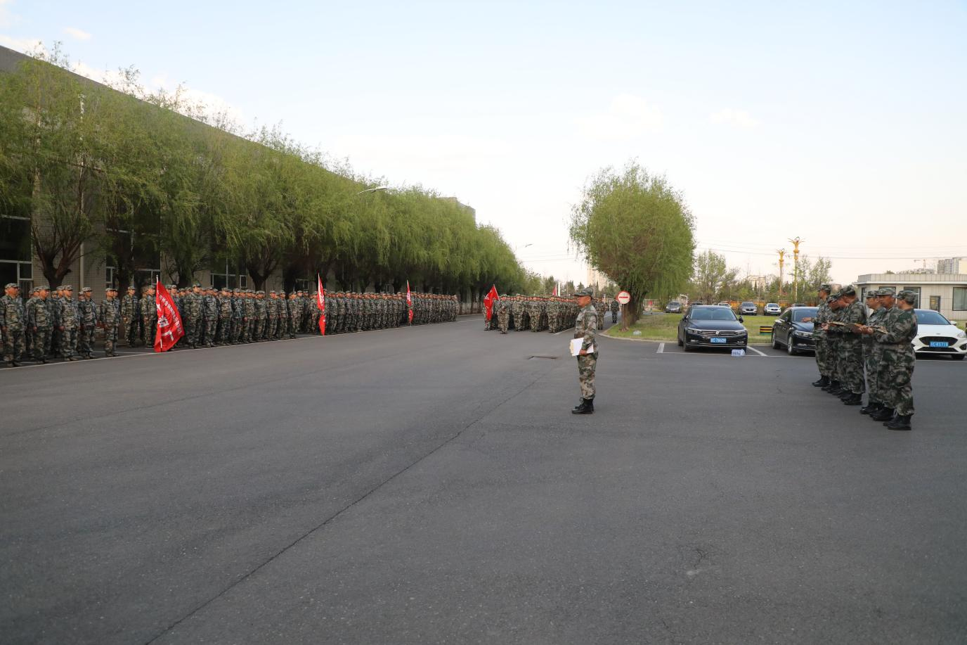 風(fēng)輕云淡,傍花隨柳。5月7日金鋼股份全員軍訓(xùn)在盎然春意中拉開帷幕。千余名員工在以大地為訓(xùn)練場,與春風(fēng)同行,與綠柳共舞,在嚴格的軍事化訓(xùn)練中錘煉意志,在自然的懷抱中凝聚合力。